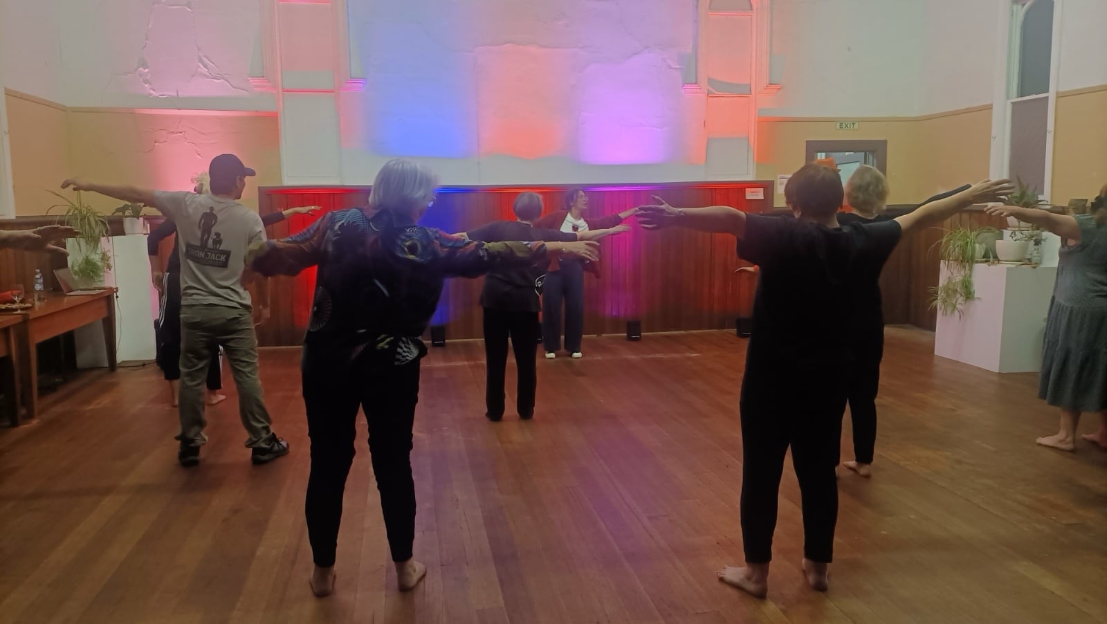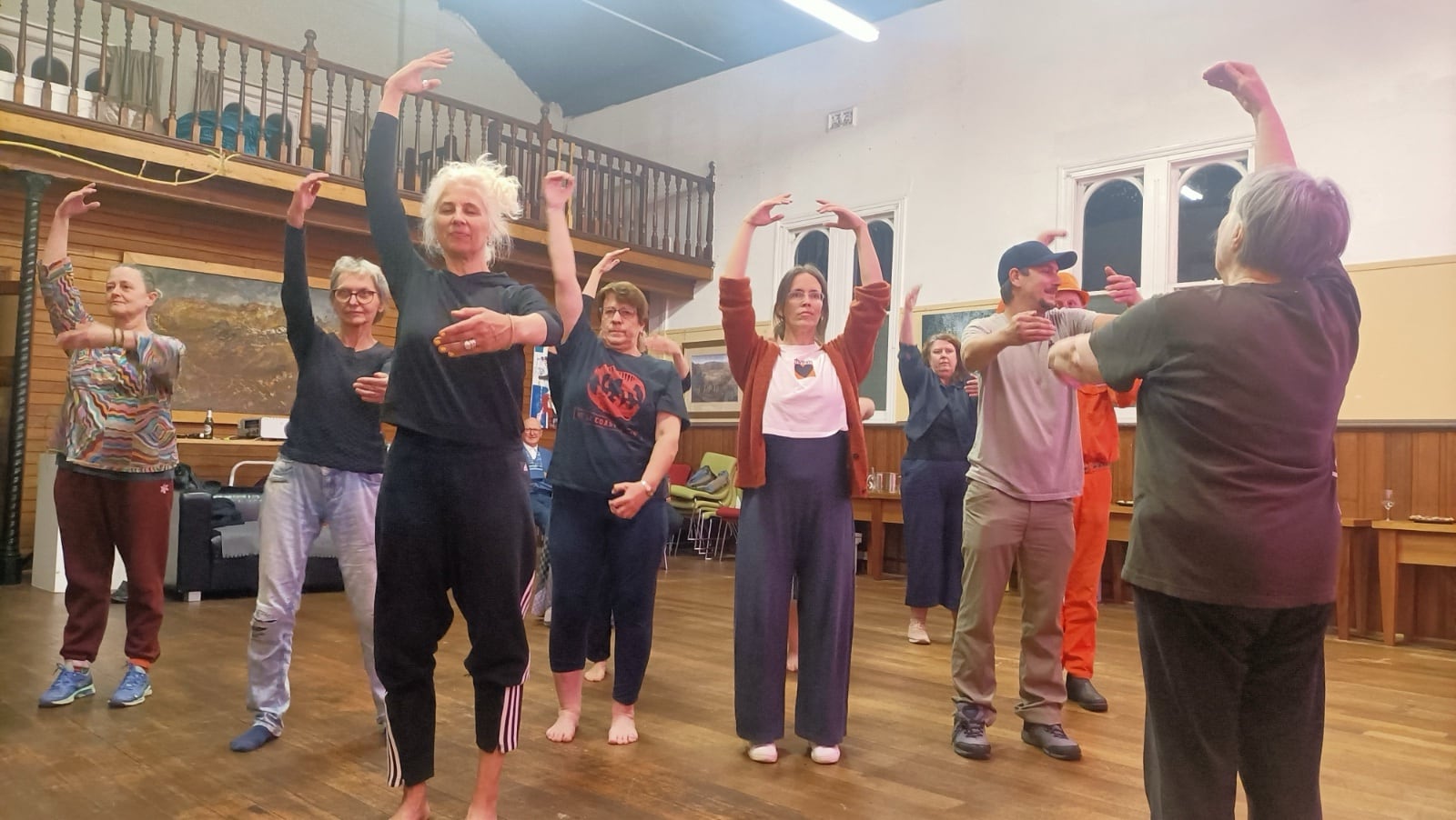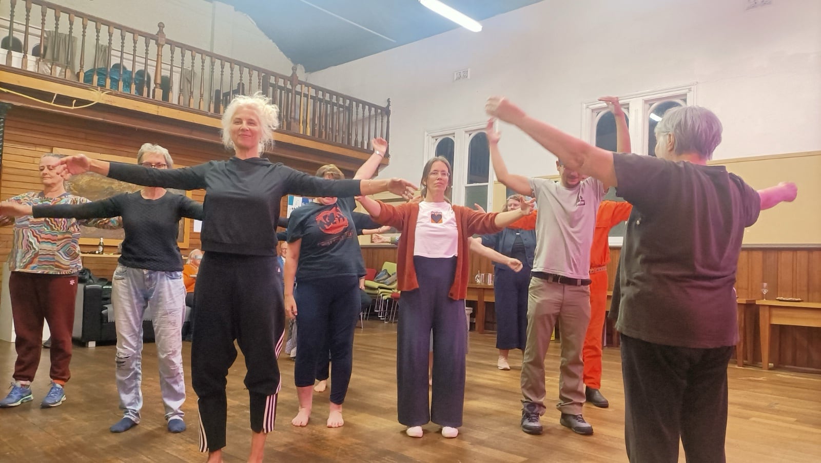 In April 2025 MADE artists in residence Felicity Bott, Rebecca Cannon, Shirley Gibson were assisted by Ensemble members Ann Scott and Kate Bond to offer an Open Halls workshop in The Unconformity Hall. Many local community members attended to participate in varied styles of dance: creative, contemporary and even some line dancing instantly cohering to become an excellently-humoured dancing cohort!!!