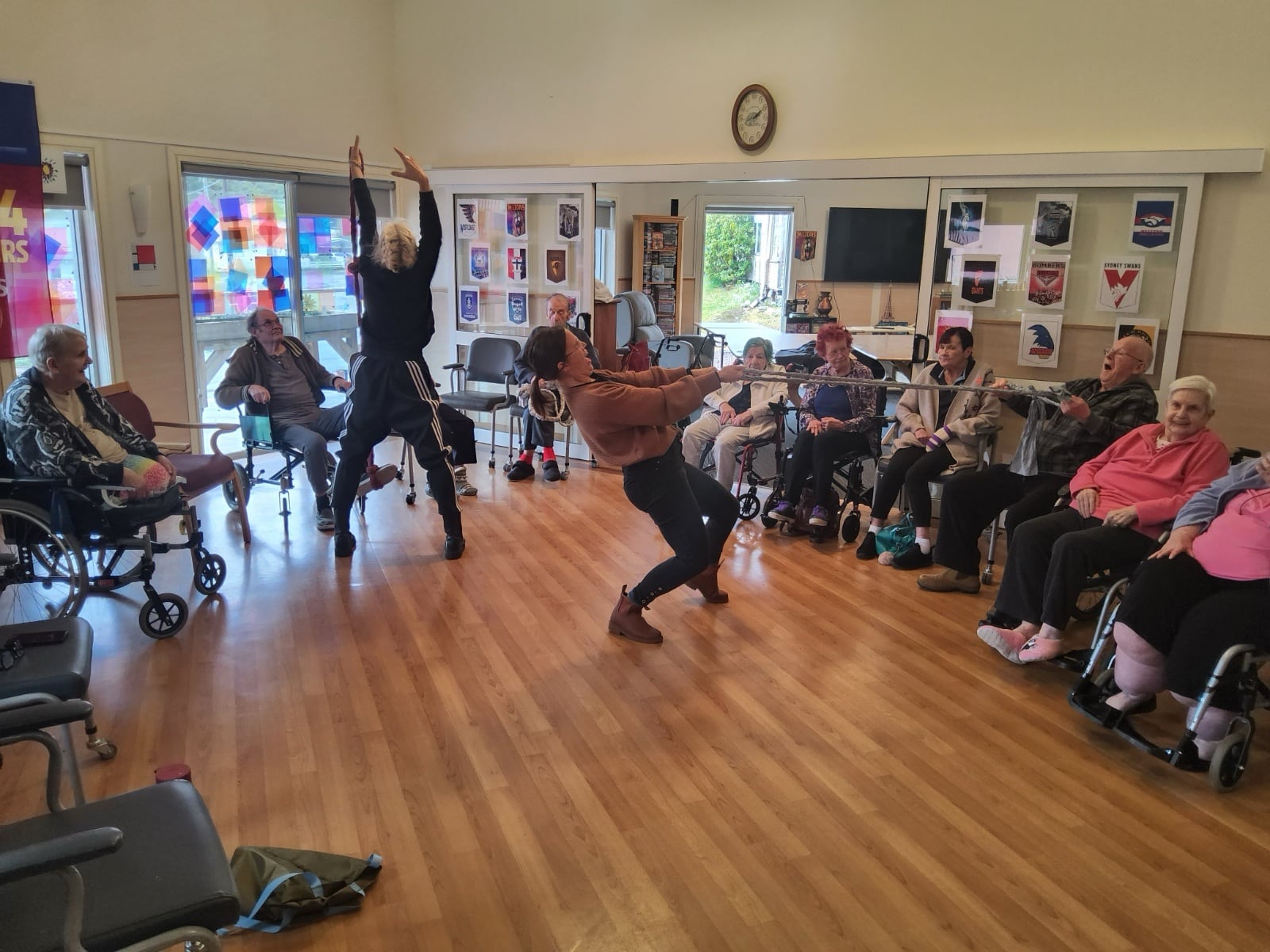 In August, September and October MADE visited Lyall House and had an hoot of a time meeting and dancing with residents. MADE was pleased to offer our Movers and Shakers workshops into this community setting which include seated dance. We introduced ideas in MADE’s new work Weaving Vibrant that premiered at THE UNCONFORMITY as well as sharing movements and stories reminiscent of glory days of balls and dances in Queenstown and the surrounding areas. Truly outstanding tales and memories!